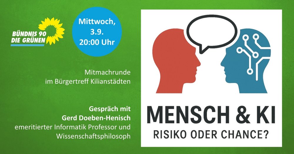Schönecks Grüne setzen die Vortragsreihe zu künstlicher Intelligenz mit dem emeritierten Informatik Professor und Wissenschaftsphilosoph Gerd Doeben-Henisch fort. Bürgerinnen und Bürgern wird erneut die Gelegenheit geboten, sich mit dem Thema ‚Mensch & KI: Risiko oder Chance?‘ auseinanderzusetzen.