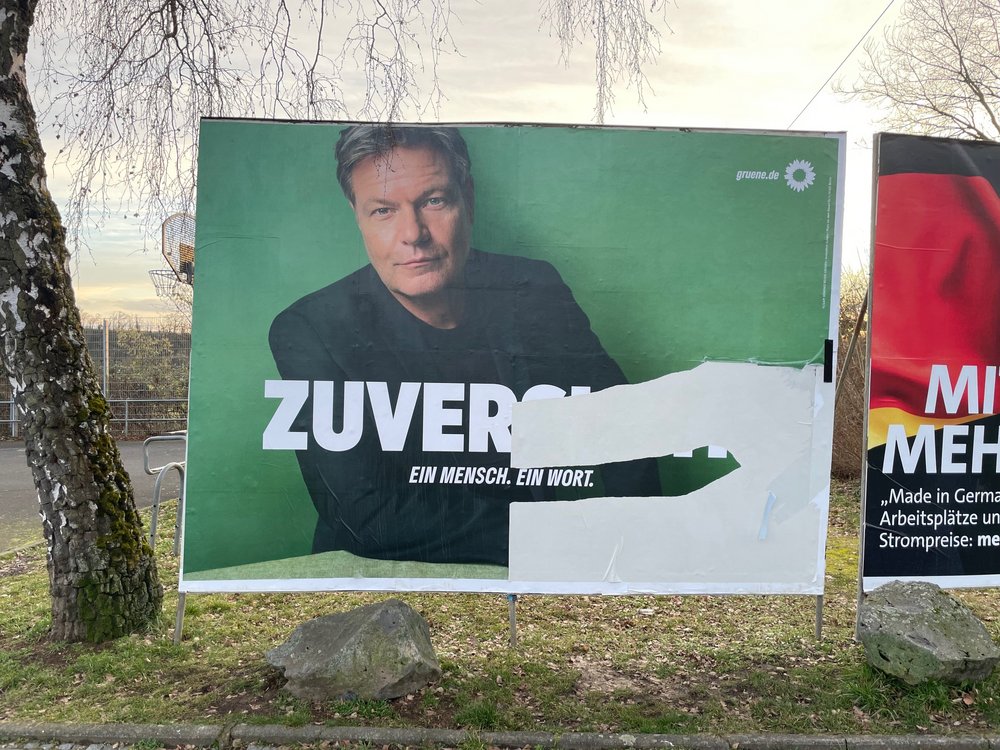 Anstatt die Beschädigung einfach zu ersetzen, haben die Grünen nun bewusst eine kreative Antwort gewählt: Ein lokaler Sprayer ergänzte das Plakat mit dem Appell, Anstand zu wahren. Auf dem abgerissenen Teil des Plakats wurde der ursprüngliche Wahlslogan zu „Zuversicht wählen.“ ergänzt.