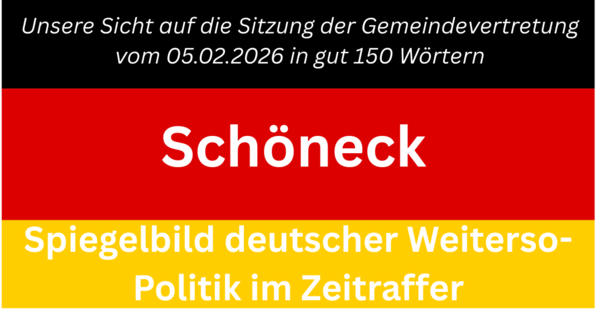 Im Zeitraffer bekamen Sitzungsbesucher*innen exemplarisch vorgeführt, woran es in Deutschlands Politik hakt: Man traut sich weder an Ursachen echter Probleme unserer Zeit (z.B. Erderhitzung, Explosion der Lebenshaltungskosten) noch an deren Lösung heran. Dabei liegen die Zusammenhänge auf der Hand.