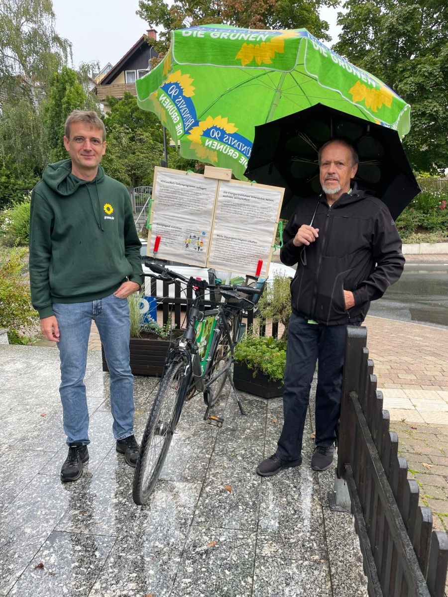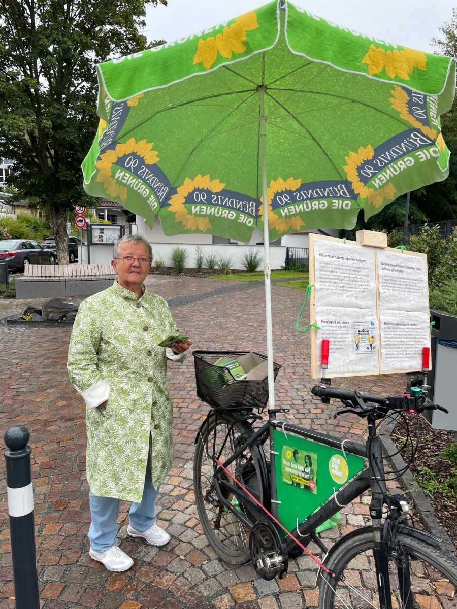 Gute Gespräche am Wahl-Infostand am Steinbachplatz und am Bäcker in Kilianstädten. Darüber, was wir Grüne besser machen wollen als die aktuelle Bundesregierung, zum Beispiel: Den abgewürgten Ausbau der erneuerbaren Energien wieder voranbringen, soziale Gerechtigkeit für die Kosten der Energiewende über das Energiegeld, soziale Gerechtigkeit im Steuersystem durch Entlastung kleiner und mittlerer Einkommen – während CDU und FDP insbesondere hohe Einkommen entlasten möchten. Und wir konnten aus unserer eigenen kommunalpolitischen Erfahrung berichten, wie träge eine große Koalition in Klimafragen agiert. Wie erstmal ein Klima-Arbeitskreis gegründet werden soll; wie im vergangenen Jahr der Steinbachplatz zugepflastert wurde - während gleichzeitig ein Wettbewerb „Schönecks blühende Gärten“ ausgelobt wurde und wie ein aktueller Entwurf auch den Vorgarten des Büdesheimer Rathauses zupflastern möchte – während gleichzeitig eine Vorgartensatzung Privatbesitzern genau das untersagen möchte.